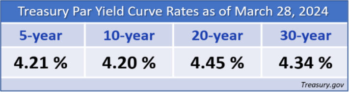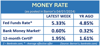 The federal funds rates have not changed since July 2023, when the Fed raised rates by 25 basis points. The March 19-20, 2024, Federal Reserve meeting marked the fifth consecutive time in a row that rates were held steady at a range of 5.25-5.5%. The Fed’s statement released shortly after their March meeting concluded noted that, “Recent indicators suggest that economic activity has been expanding at a solid pace. Job gains have remained strong, and the unemployment rate has remained low. Inflation has eased over the past year but remains elevated.”